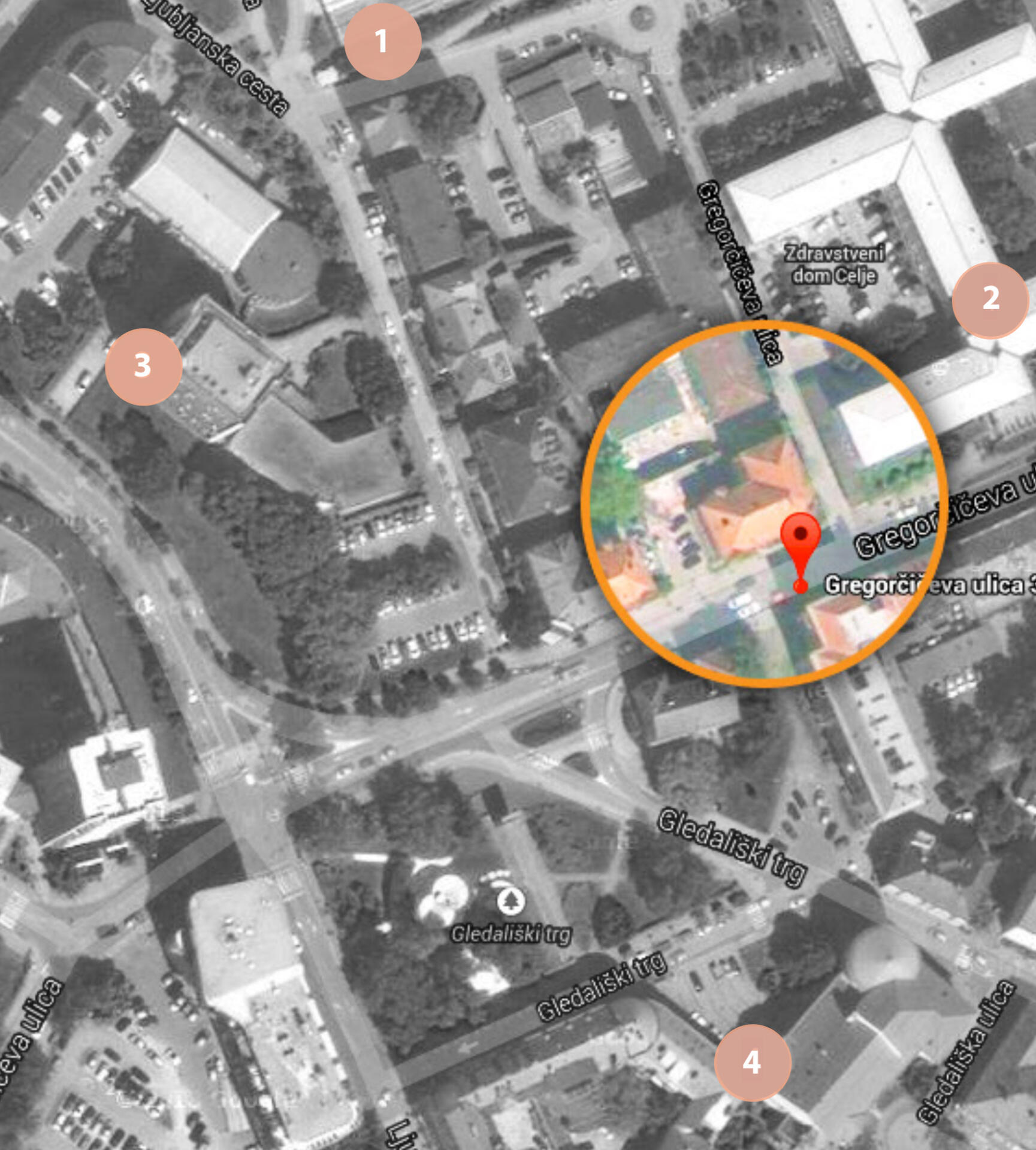 Lepotica na Gregorčičevi se nahaja na odlični lokaciji v centru mesta, v bližini bolnišnice in zdravstvenega doma. V njeni neposredni bližini so tudi osnovna šola, gimnazija, gledališče in ostale institucije, ki so pomemben del vsakdanjega življenja. Do centra mesta s pestro kulinarično ponudbo se lahko enostavno sprehodite.